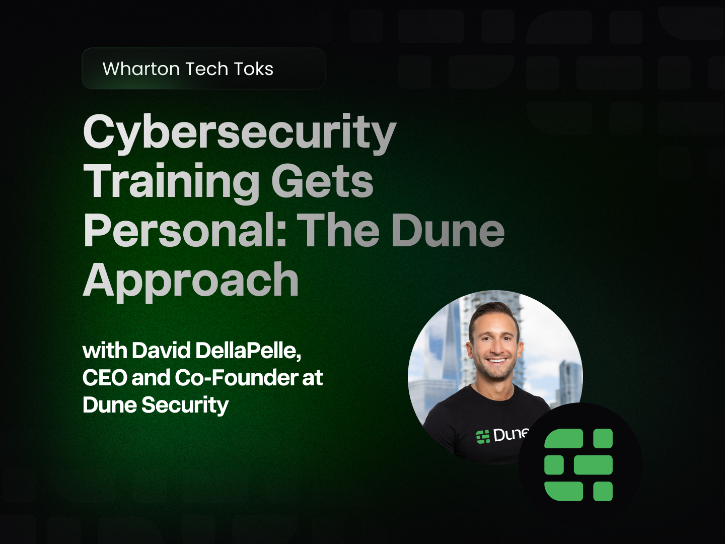On this episode of Wharton Tech Talks, Dune Security CEO David DellaPelle joins host Kirk Hachigian to discuss how AI and behavior-based intelligence are redefining enterprise cybersecurity. David shares how Dune was built to address the 90% of breaches driven by human behavior, replacing outdated training with personalized, data-driven risk reduction. He explains how AI-generated threats, from deepfakes to hyper-targeted phishing, are reshaping the human attack surface, and how Dune’s platform quantifies and remediates user risk in real time.