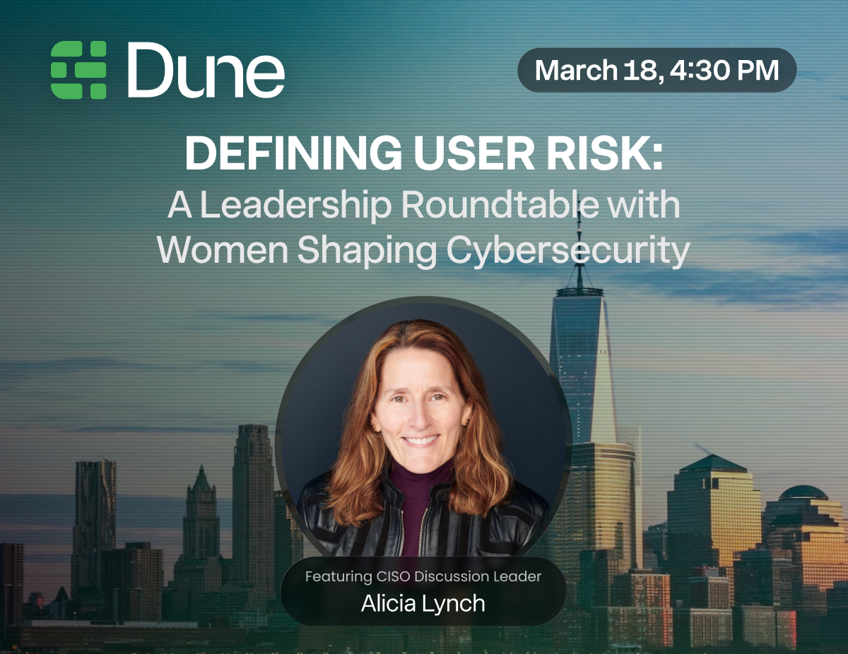In recognition of Women’s History Month, this private roundtable brought together experienced women leaders in cybersecurity to discuss how user risk is being measured, prioritized, and shaped across enterprises. The discussion was led by Alicia Lynch, an industry-leading Chief Information Security Officer, and the insights shared will help inform and guide Dune Security’s research and priorities in the year ahead.
