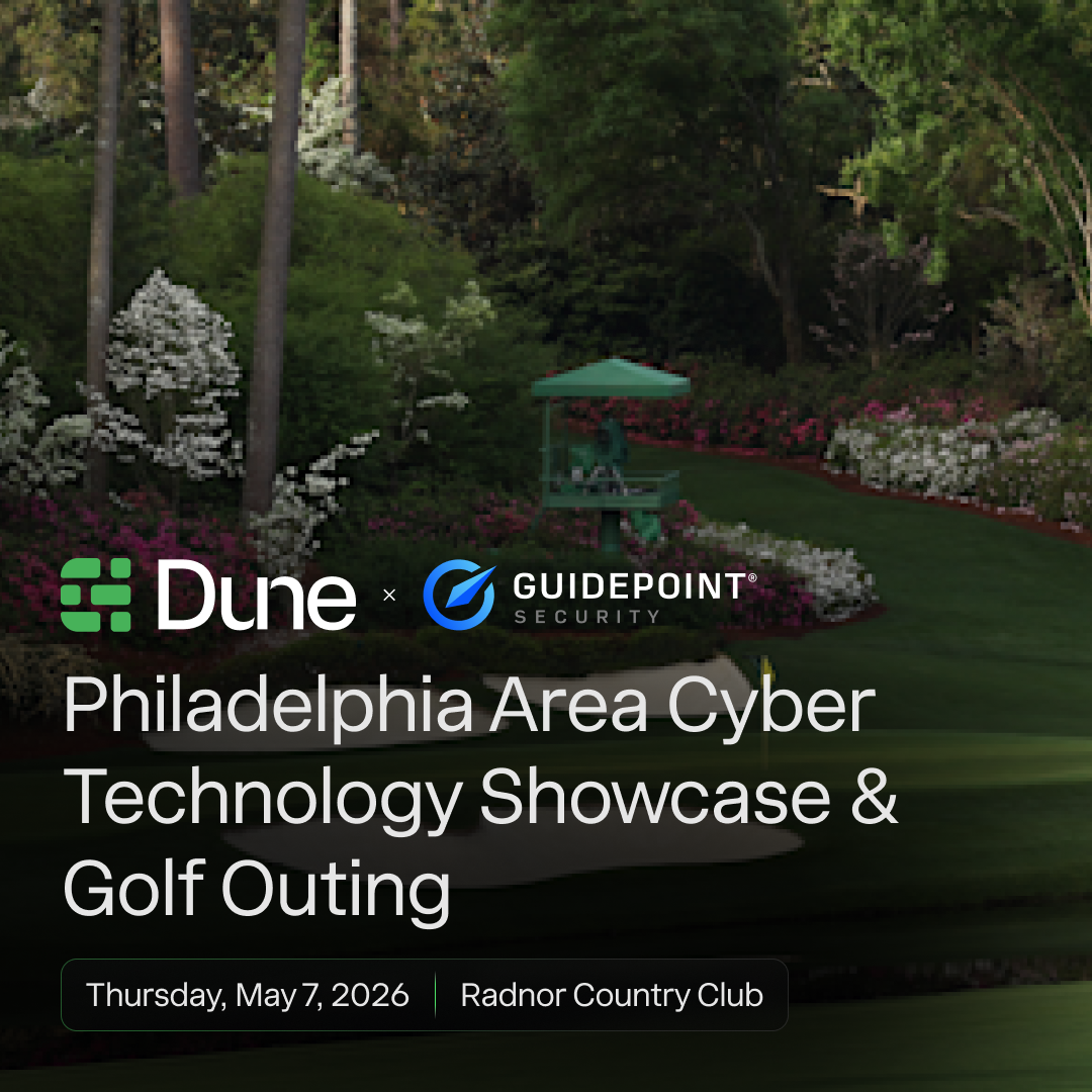 Dune Security is excited to be part of the Philadelphia Area Cyber Technology Showcase and Golf Outing, hosted by GuidePoint Security at Radnor Country Club in Villanova. Taking place on May 7 from 8:00 AM to 6:00 PM ET, the event brings together security teams, industry partners, and technology leaders for a full day of connection and collaboration.